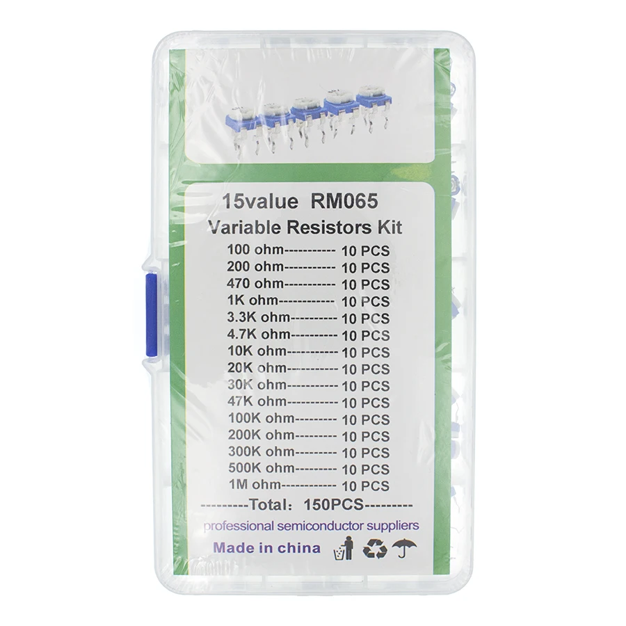 This 150-piece RM065 trimmer potentiometer kit provides a comprehensive selection of 15 different resistance values, making it an essential component assortment for electronics enthusiasts, technicians, and engineers. Each kit contains 10 pieces of each resistance value, ensuring you have adequate stock for multiple projects and repairs.