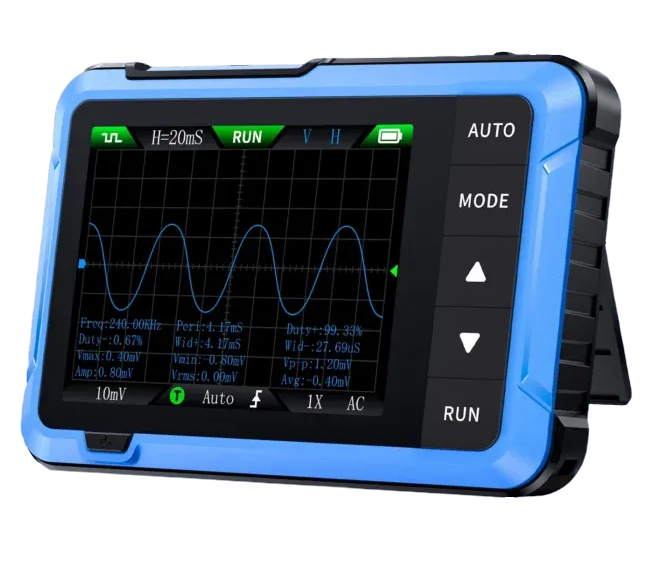 The FNIRSI DSO510 is a pocket-sized digital oscilloscope with a built-in signal generator.